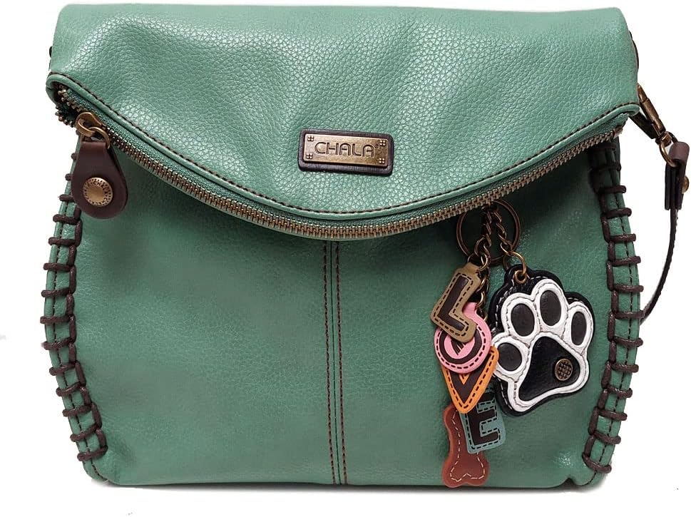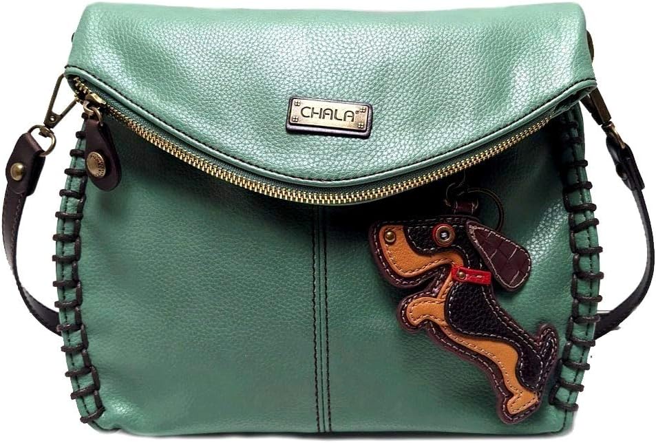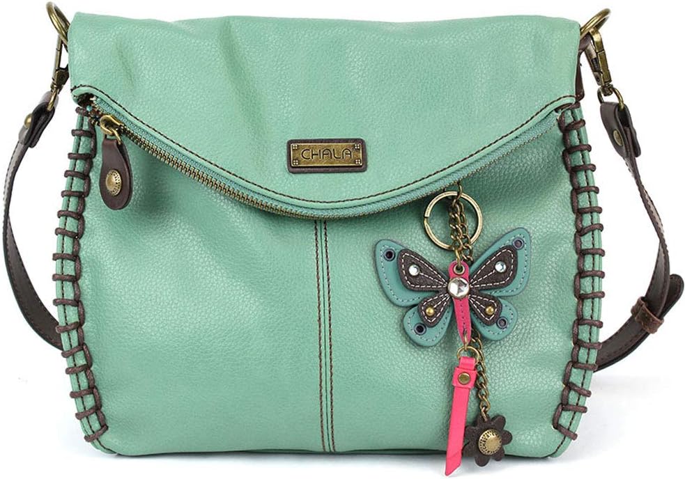 Chala Charming Crossbody Bag With Flap Top | Flap and Zipper Cross-Body Purse or Shoulder Handbag with Metal Chain - Teal - Dragonfly